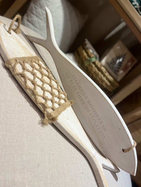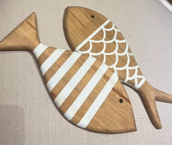 Blanco y madera: 39 cm de largo x 15 cm de ancho.